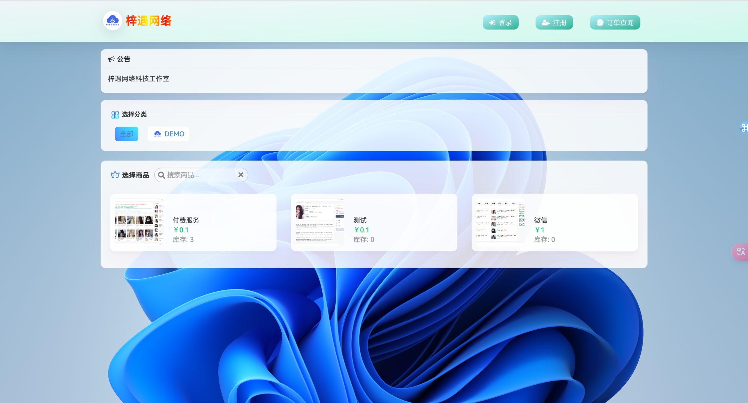 商品销售,支持商品配图、会员价、游客价、邮件通知、卡密预选(用户可以预选自己想购买的那个账号或者卡号)、API对接、强制登录购买、强悍的自定义控件功能、限时秒杀、批发优惠、优惠卷、等众多功能。