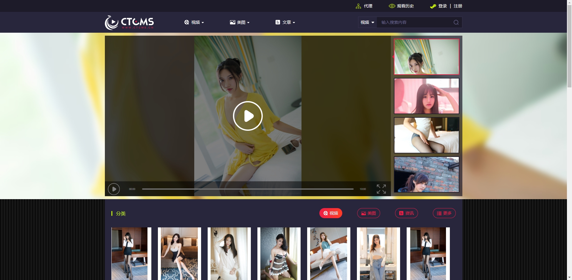 三大模块,视频模块,图片模块,资讯模块。全方面解决了多元素运营方案。采用CI框架核心开发,体积小、运行快,强大缓存处理。视频采用了云转码服务将不同的视频来源、不同的尺寸、不同的格式,统一转换为m3u8格式,适应在PC、TV以及移动终端上播放的格式,满足不同视频类型播放需求。源码官方卖到近万元,某站破解版卖800元!系统自带云转码 切片功能,无需再购买云转码产品。购买本程序终身使用转码系统